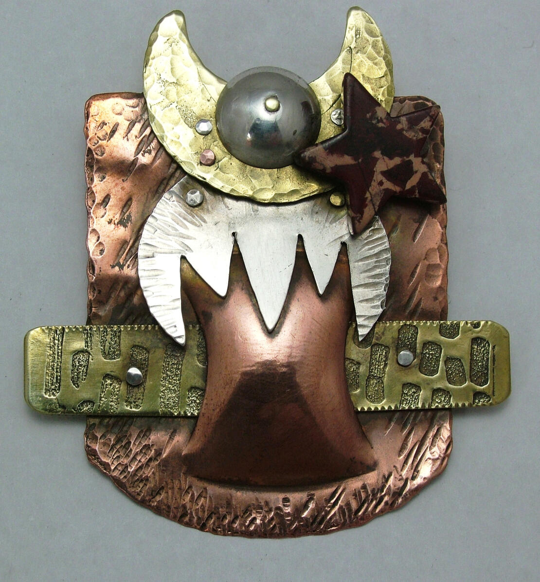 I design and fabricate contemporary jewelry. Gold, Silver, Copper, Brass & quality Gemstones are the materials used in my handmade jewelry.Various metal working techniques are used such as forging, soldering, piercing, riveting, and building of hollow forms. Surface finishing such as tool stamping, satin and hammer tone finishes, rolling mill pattern textures which I produce from acid etched master plates and hydraulic press forms from silhouette dies which I design and cut are also techniques used in my jewelry.To produce multiples from designs I make master models directly from metal fabrication and then make silicon rubber molds of those items to be cast via the lost wax method. From there a great deal of finishing and soldering of parts occurs with more finishing and setting of stones.GAYTON ARRIGOTTI